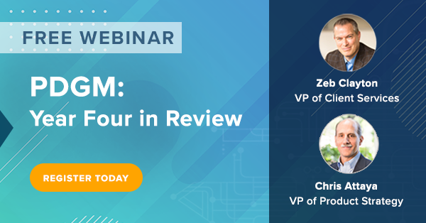 Now that we are more than a year past the implementation of PDGM, the timing is right to review some beneficial insights and analyses regarding PDGM and how COVID-19 is impacting the results. Join us for a free webinar April 21st. Our presenters Zeb Clayton and Chris Attaya will take a deep dive into the data, discuss lessons learned, and help you to prepare for possible changes in 2022.